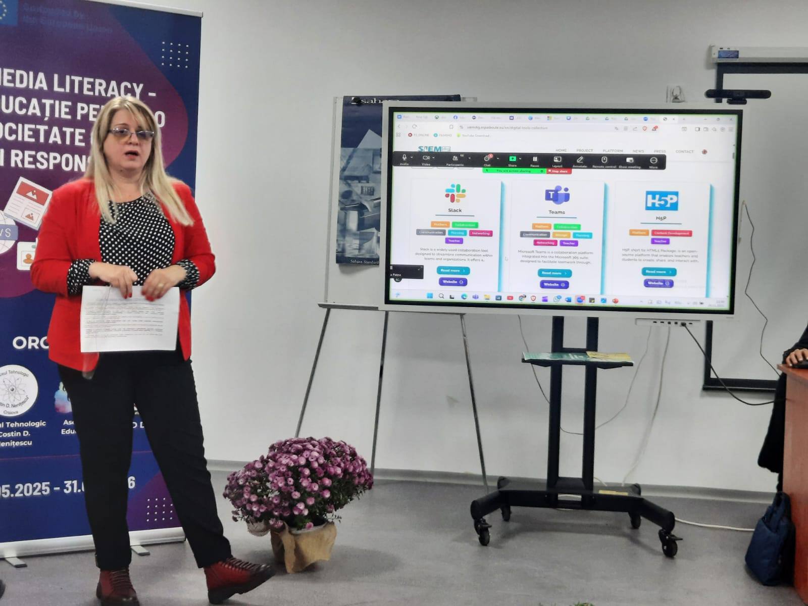 • Delivery of a structured PowerPoint presentation titled “Building the Future through Media Literacy: VR Experiences and Stories of Inclusion in Erasmus+”.