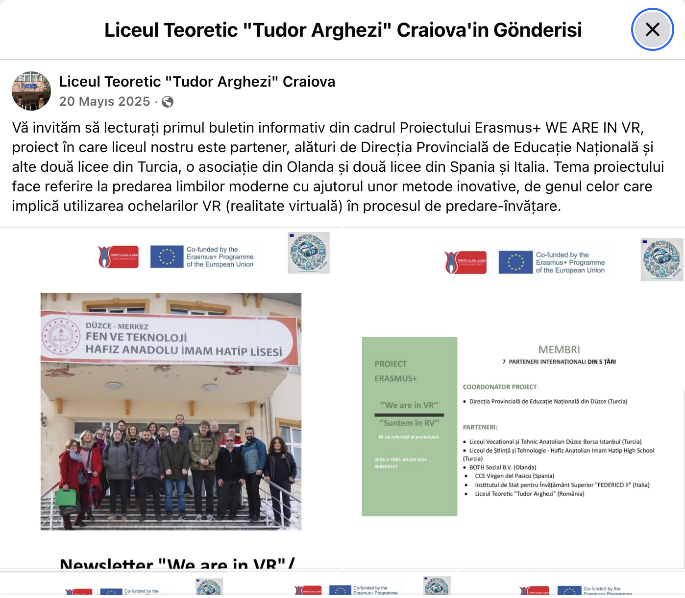 • Publication of a Facebook post introducing the first project newsletter.